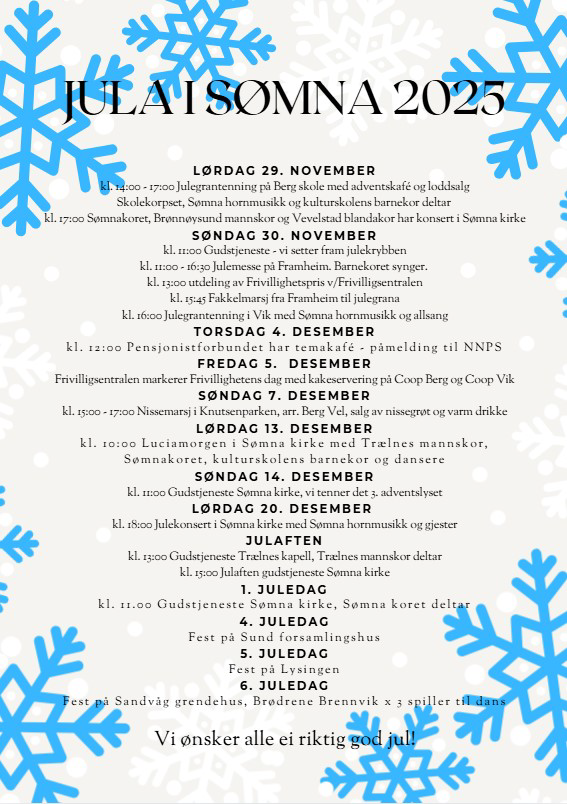 Sømna Hornmusikk inviterer til sin tradisjonelle førjulskonsert den 20. desember kl. 18.00. Også i år vil vi ha med oss gode venner på konserten. Billetter kan kjøpes her: https://billett.no/order/aS2vgMhqx2mi1KYKdTaI